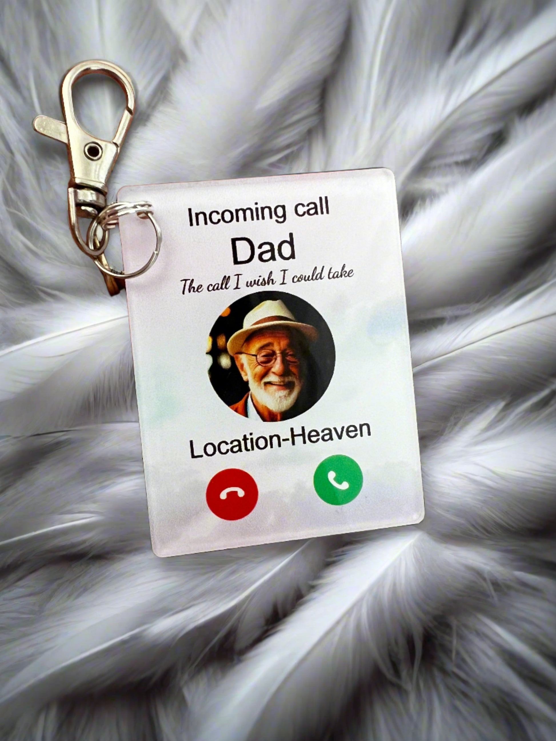 Beautiful acrylic memorial phone call keyring , made from 3mm clear acrylic and uv printed