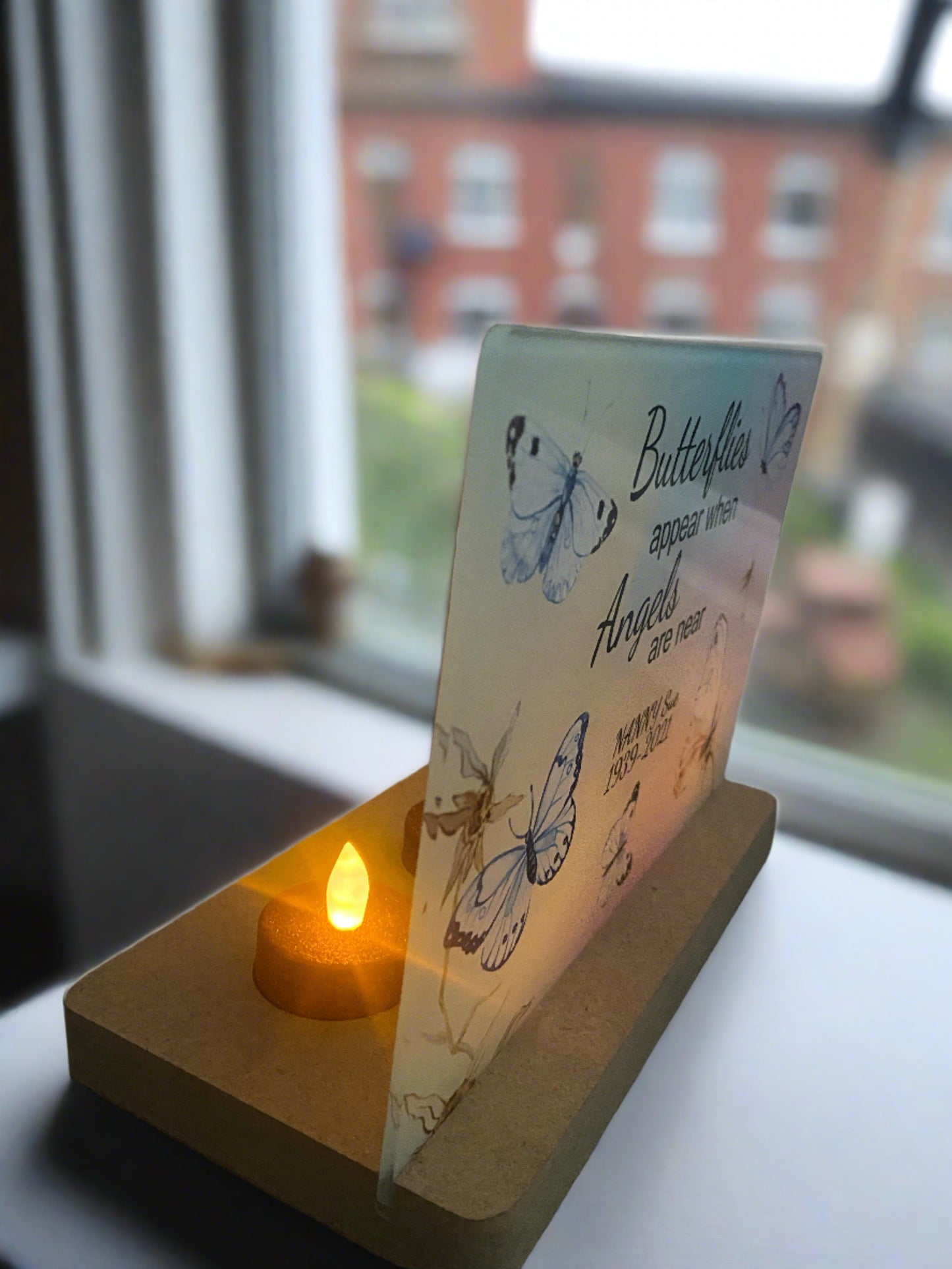 Beautiful uv printed acrylic butterfly plaque with 3 tealight holder