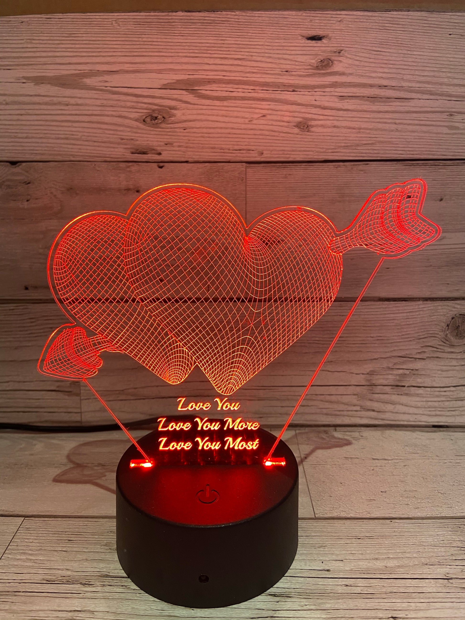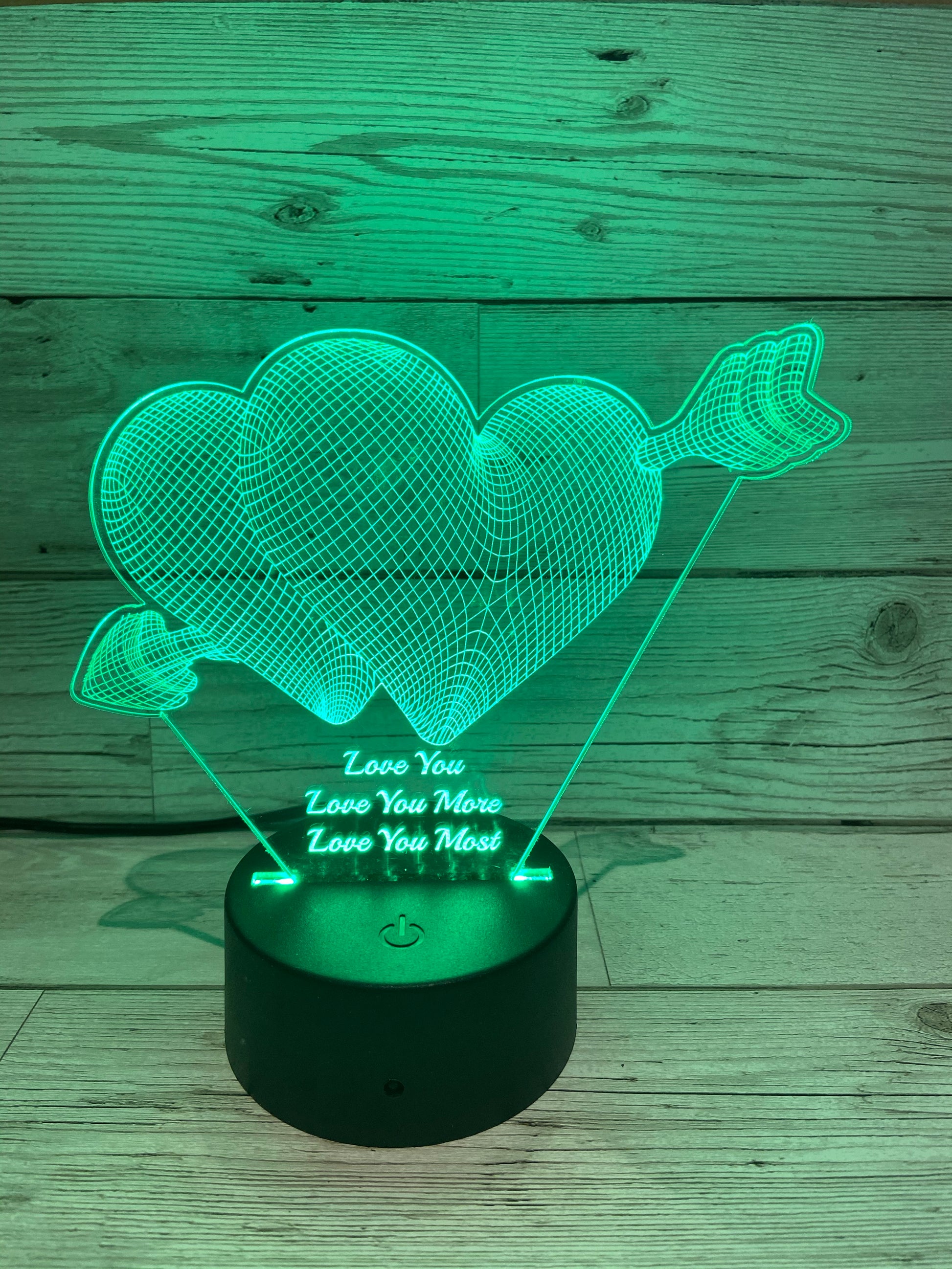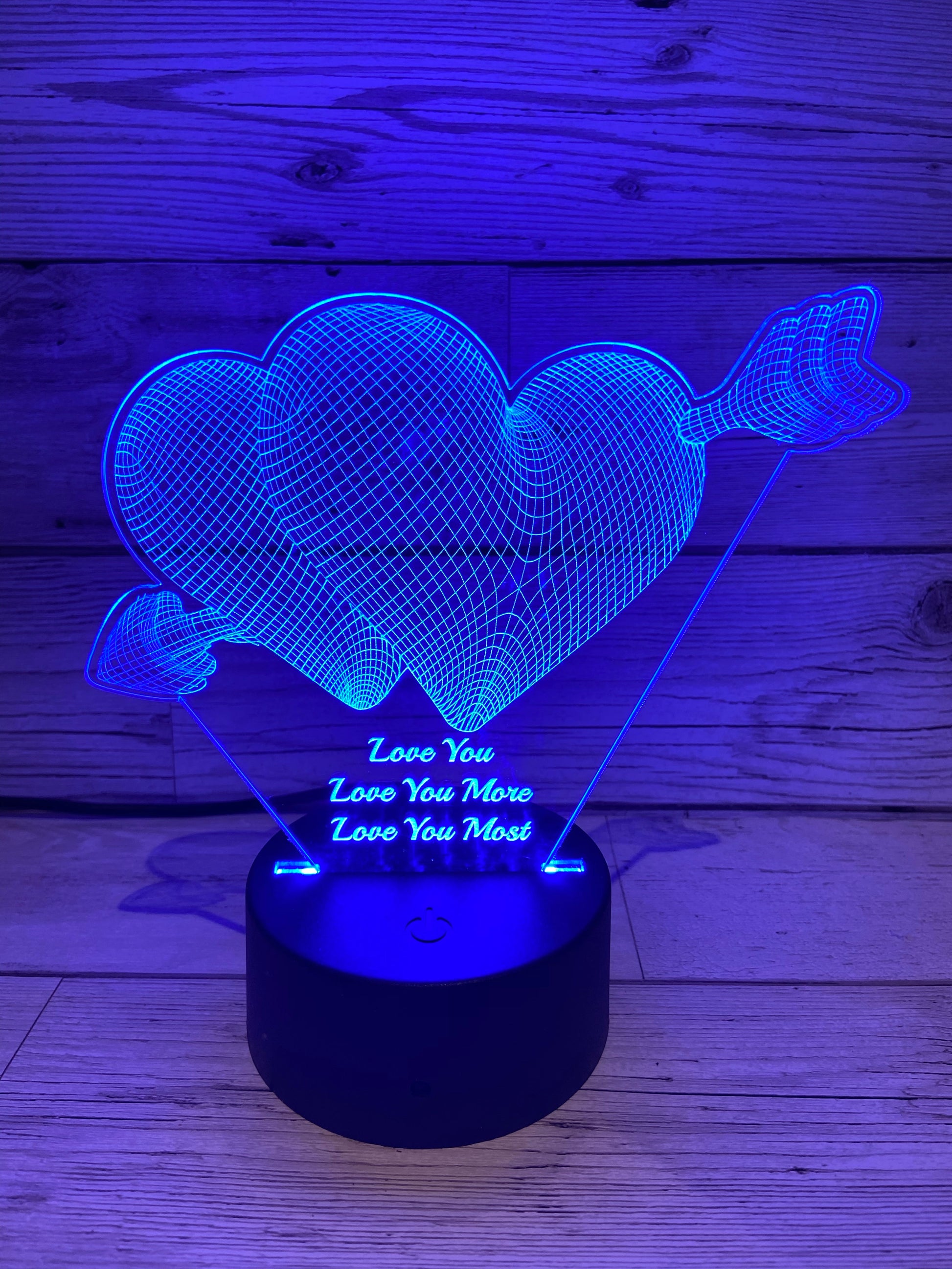 Stunning light up Acrylic Display on an LED stand. The stand comes with a remote control and has 9 different colours and several light effects. The base can be powered via USB ( cable supplied) or Batteries ( not supplied)