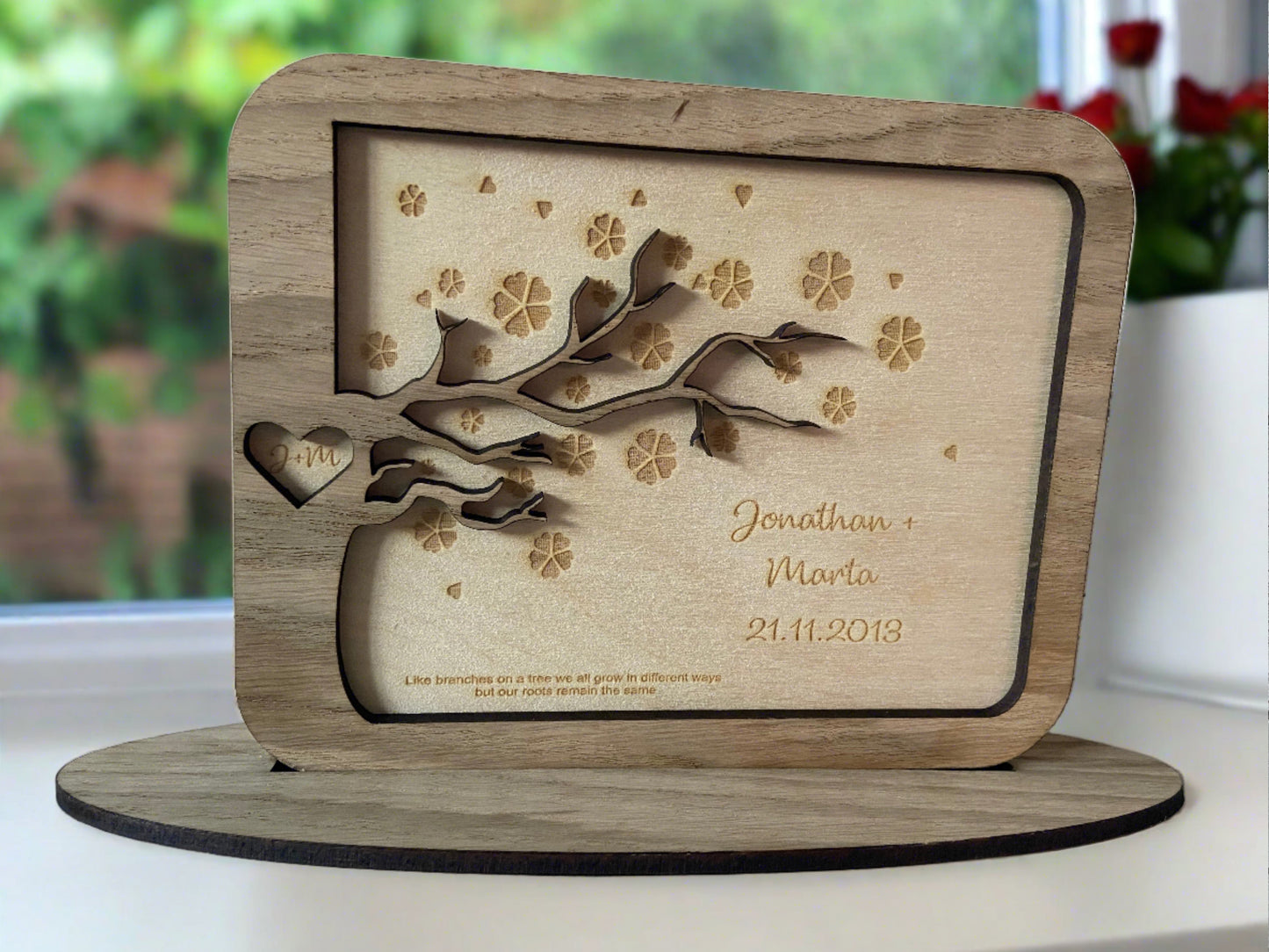 Made from 4mm oak veneer and 3mm birch beautiful love tree freestanding plaque