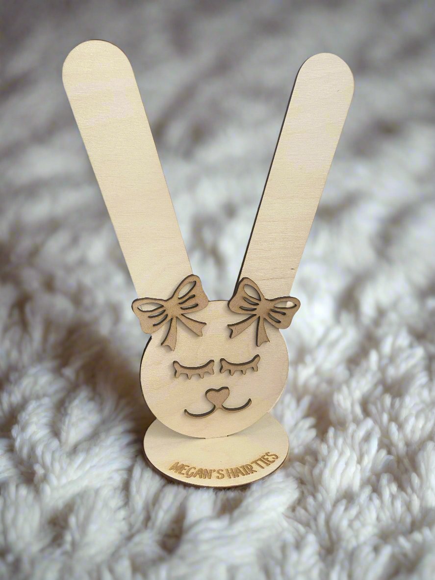Made from 3mm birch and 3mm mdf ,wooden freestanding bunny hair ties stand
