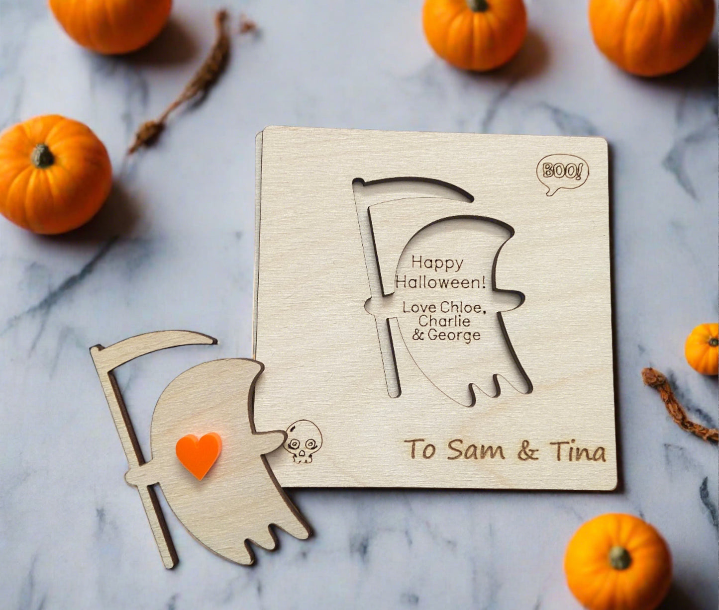 card is approx 10cm x 10cm x6mm a d comes with orange acrylic heart