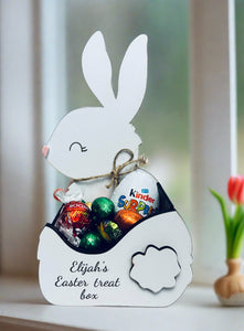 Made from white wood , personalised bunny treat box