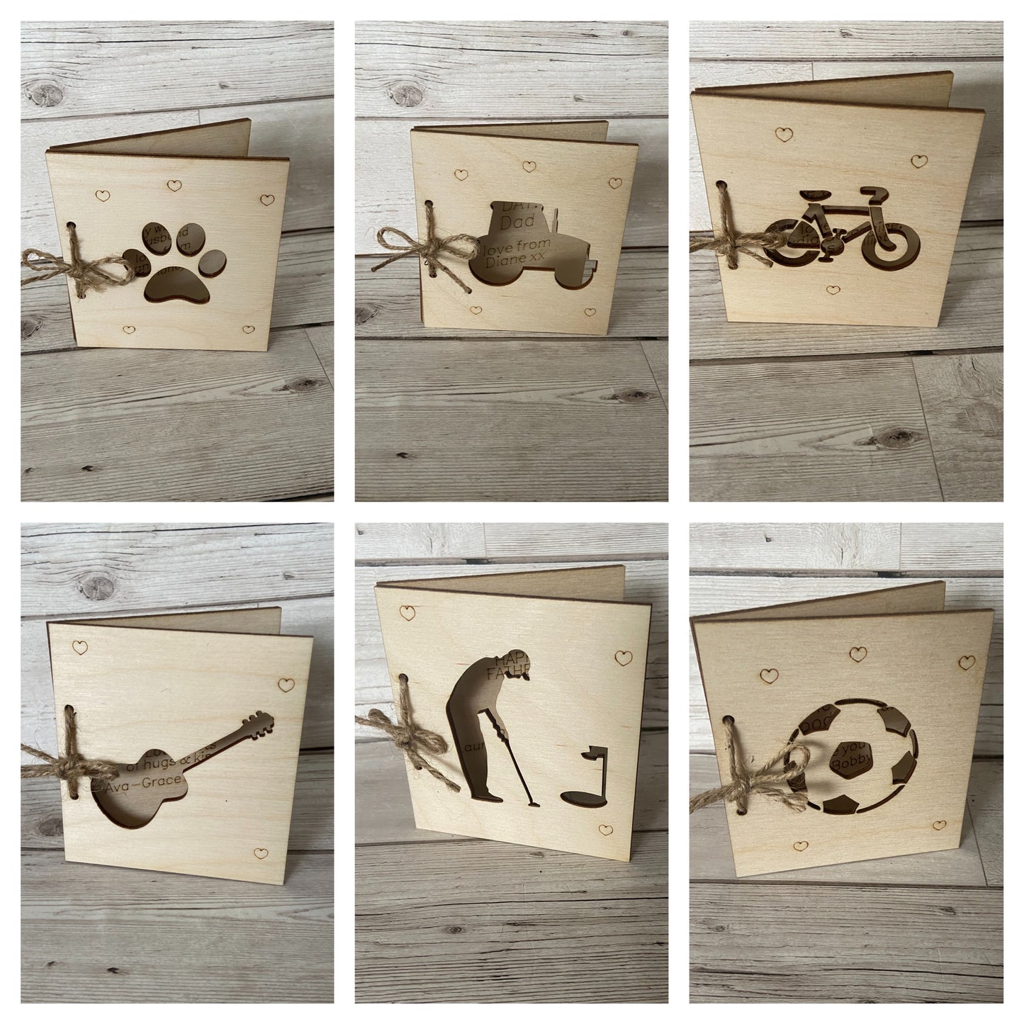 Wooden personalised Father’s Day card -13 designs