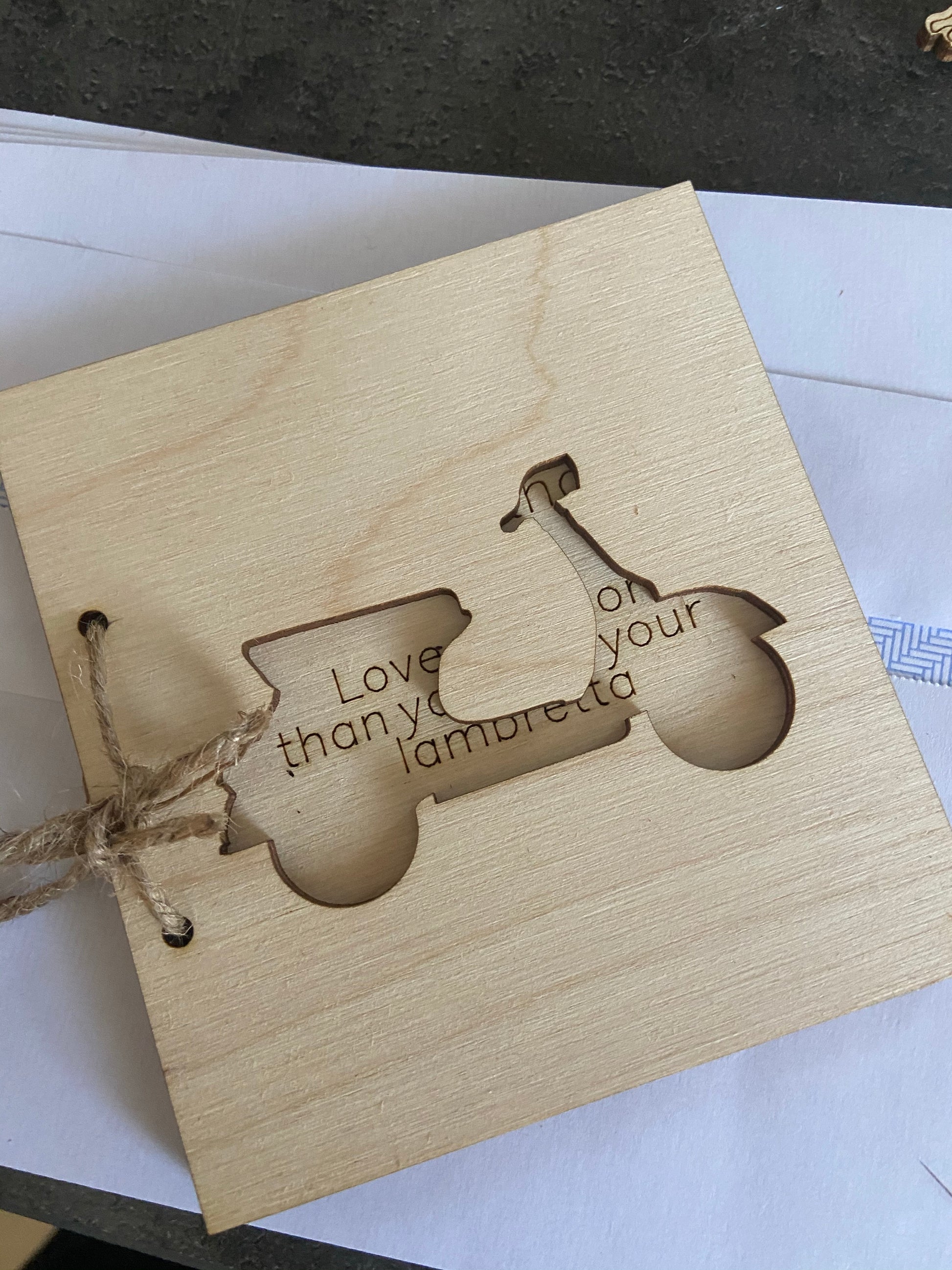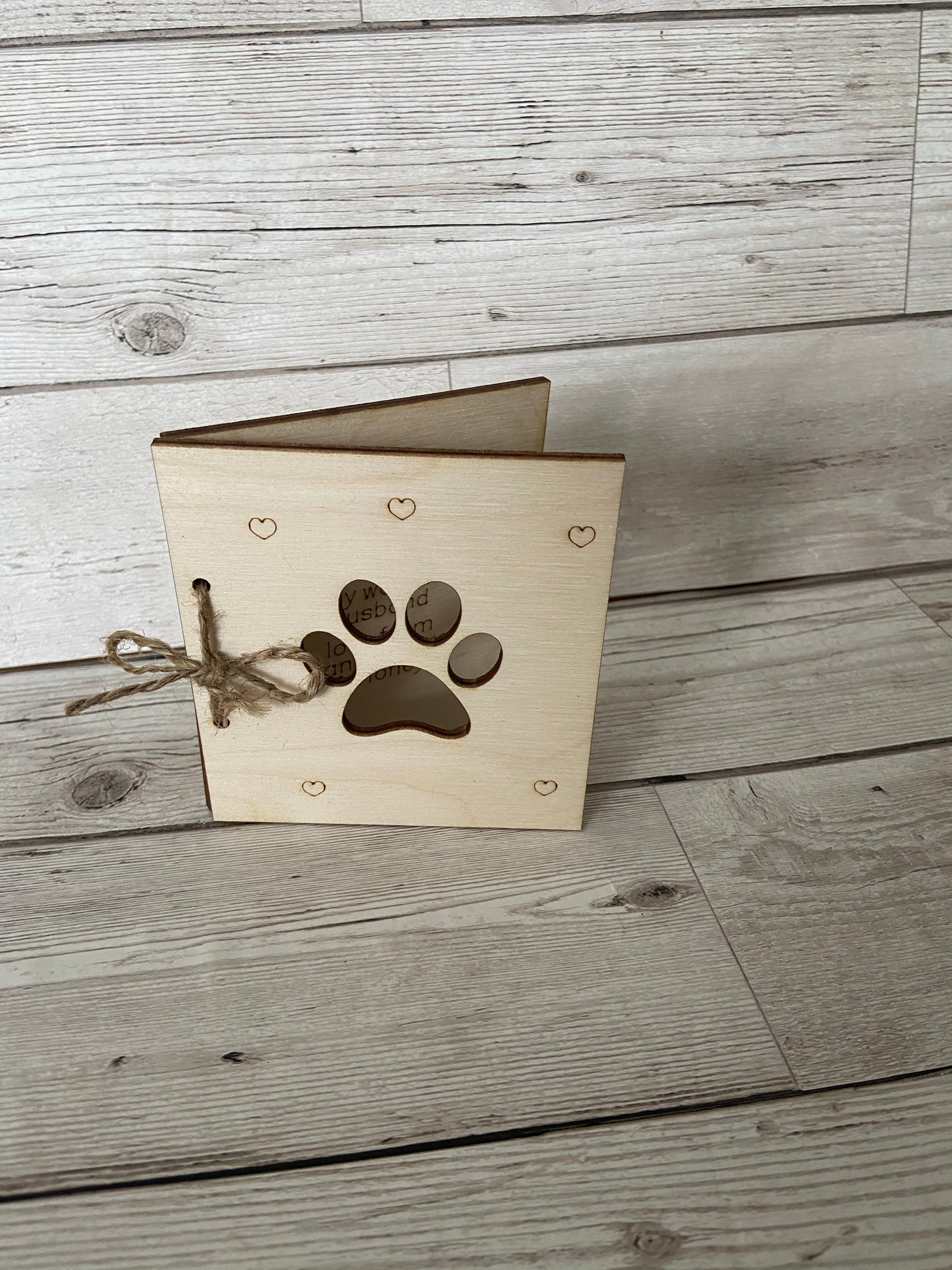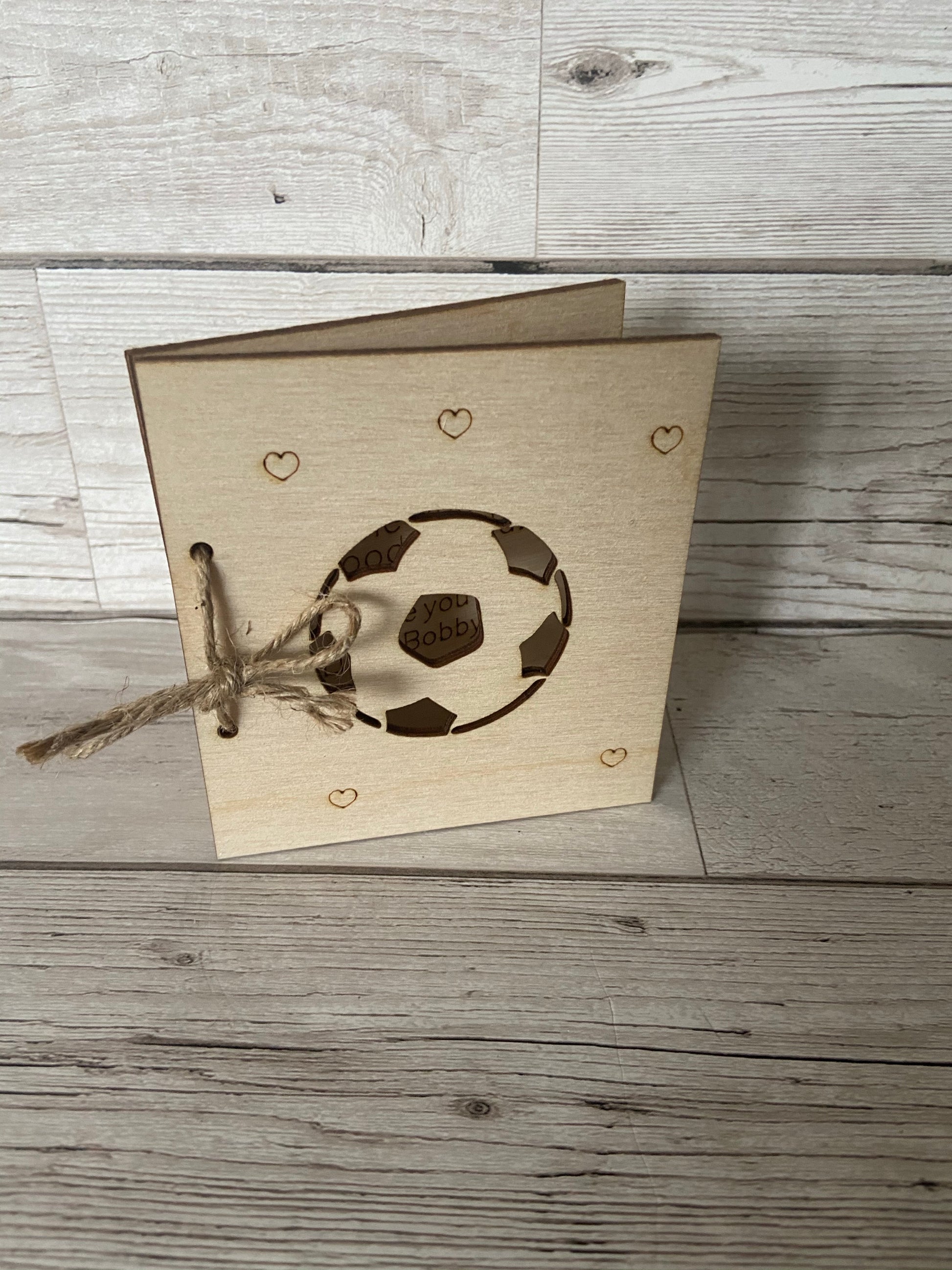 Made from 3mm birch laser cut and engraved wooden card