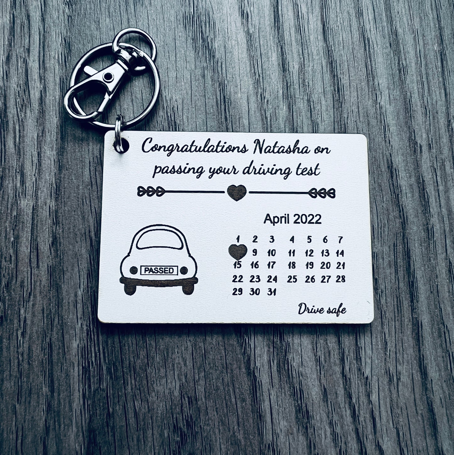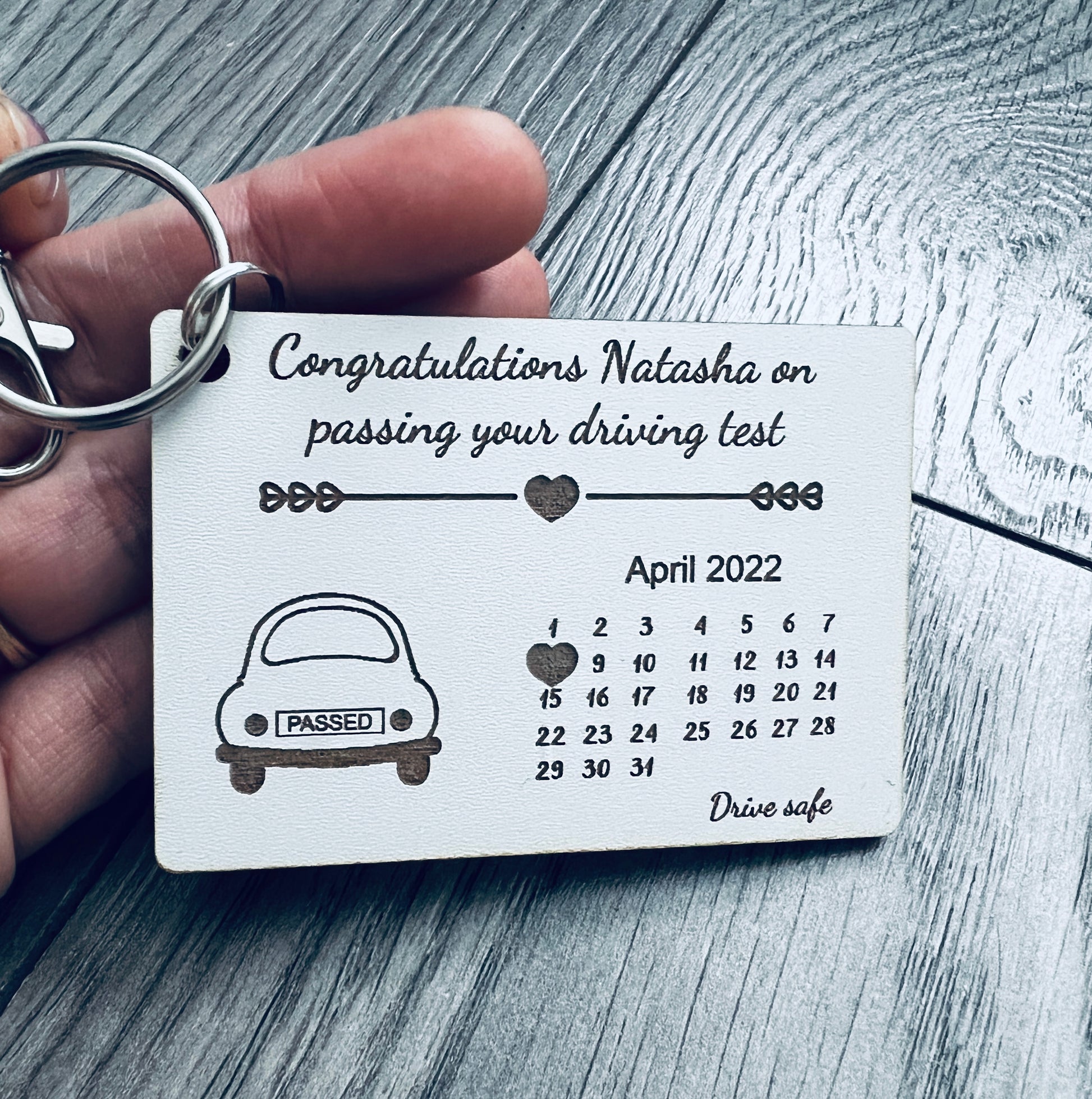 Wooden personalised passing driving test keyring
