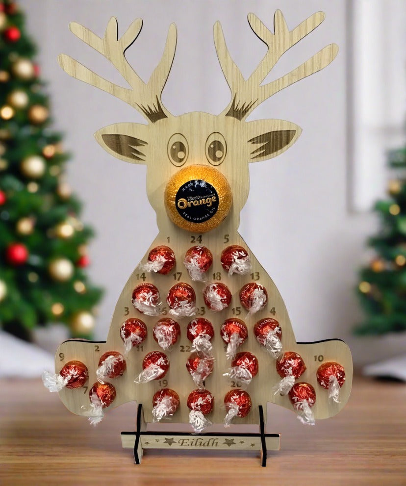 Wooden reindeer advent calendar. Each calendar can be personalised with a name of your choice. (add name to the box above )